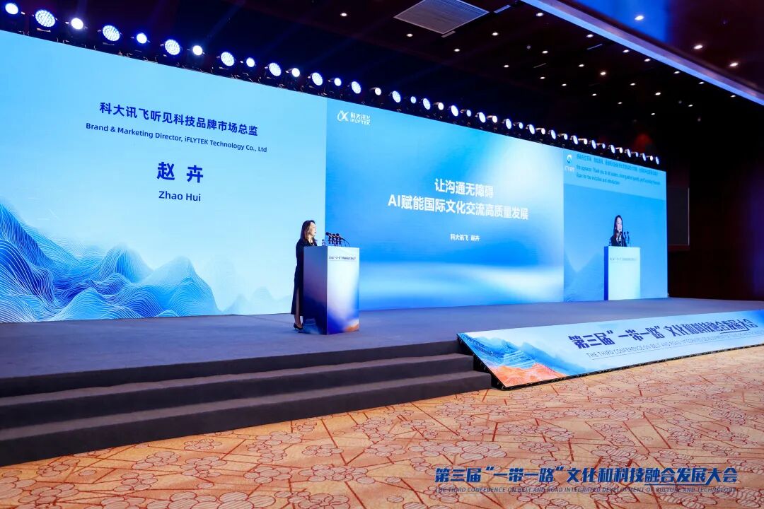 11月18日,第三届“一带一路”文化和科技融合发展大会在北京举办,大会设置了开幕式主旨演讲及多场分会场论坛,围绕文物数据资源应用、人工智能助力国际文化交流与合作等议题展开研讨。科大讯飞受邀参会,其中,讯飞同传为大会提供中英实时同传翻译服务,让来自不同国家的嘉宾都能清晰准确地获取大会信息、原汁原味地看懂演讲者的精彩内容。在主题报告环节,科大讯飞听见科技品牌市场总监赵卉以“让沟通无障碍,AI赋能国际文化交流高质量发展”为题,分享了科大讯飞覆盖多场景的AI翻译技术成果与多语言解决方案,系统阐述了科大讯飞如何以AI翻译技术应对国际交流中的语言挑战。